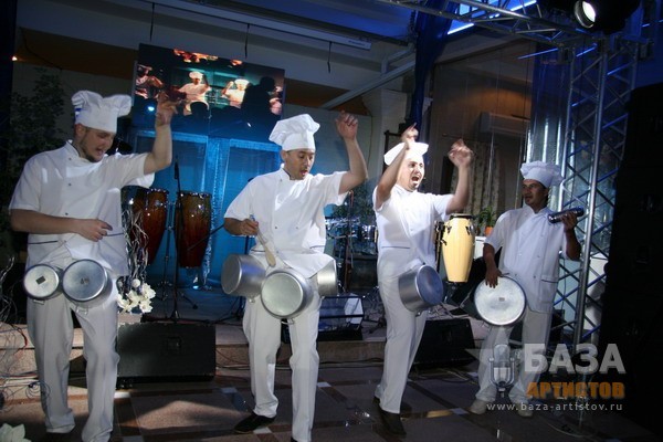 Оригинальное шоу ударных инструментов В состав группы входят: 3 Барабанщика + 1 танцовщица Программы: Блок "латина" 30 минут Блов "Восток" 30 минут Номер на кастрюлях 5 минут Номер "Чемодан" Интерактивный номер для корпоративных мероприятий и частных вечеринок
