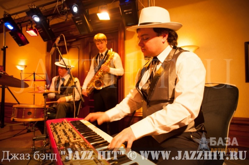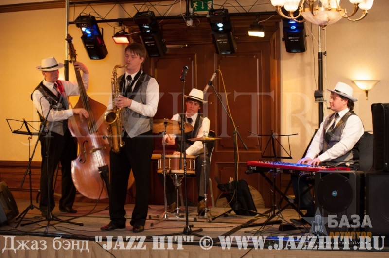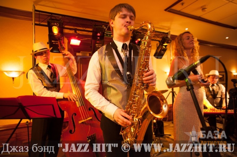 ДЖАЗ ГРУППА ДЖАЗ ХИТ Джаз группа Джаз Хит - идеальное музыкальное сопровождение для Вашего праздника! Выступление джаз бэнда придаст Вашему торжеству изысканный оттенок и подарит неописуемое эстетическое наслаждение. В состав джазового коллектива входят известные московские джазмены, которые покорили не только отечественную сцену, но и мировой олимп. МУЗЫКАЛЬНОЕ ОФОРМЛЕНИЕ СВАДЕБ Как украсить свадьбу и сделать ее незабываемой и не похожей на другие? Пригласить джазовую группу Jazz Hit! Живой джаз может звучать в то время, когда собираются гости, создавая атмосферу комфорта и веселья. Когда все гости уже собрались, то можно устроить джазовый концерт. Отличным сюрпризом будет исполнение свадебного танца в сопровождении живого джаз ансамбля или концертное отделение жениха с заранее разученными хитами Фрэнка Синатра, в качестве подарка невесте. КОНЦЕРТНОЕ ВЫСТУПЛЕНИЕ Джаз - уникальная и универсальная музыка, на основе которой зародилось множество других стилей. Буквально в одно мгновенье джаз бэнд Jazz Hit перевоплощается в полноценную кавер-группу. Теперь можно услышать и потанцевать под любимые хиты в виртуозной джазовой обработке! ДЖАЗ НА ВЕЛКОМ Джаз бенд Jazz Hit - это исключительно живая музыка. Джазовый ансамбль выступает с инструментально-вокальной программой, которая великолепно подходит для встречи гостей, так называемый джаз на велком или фоновый джаз.