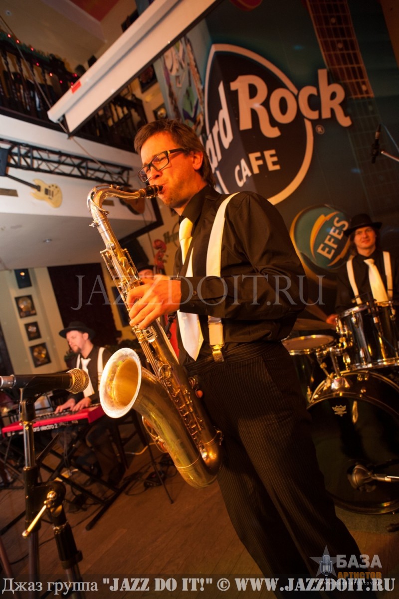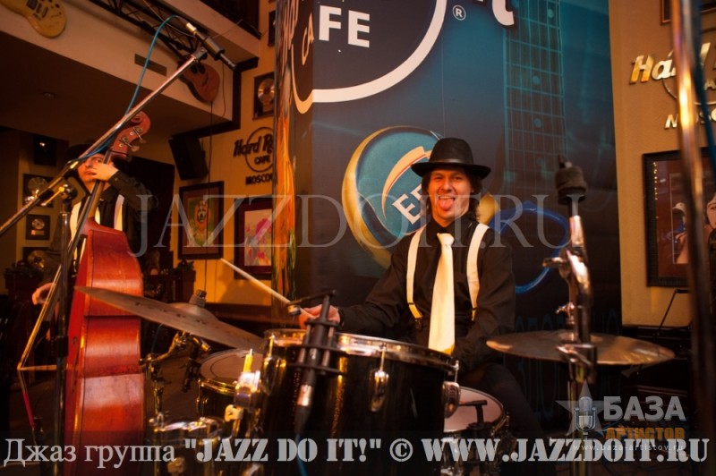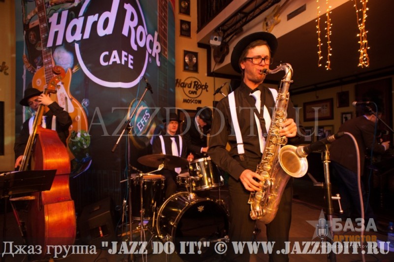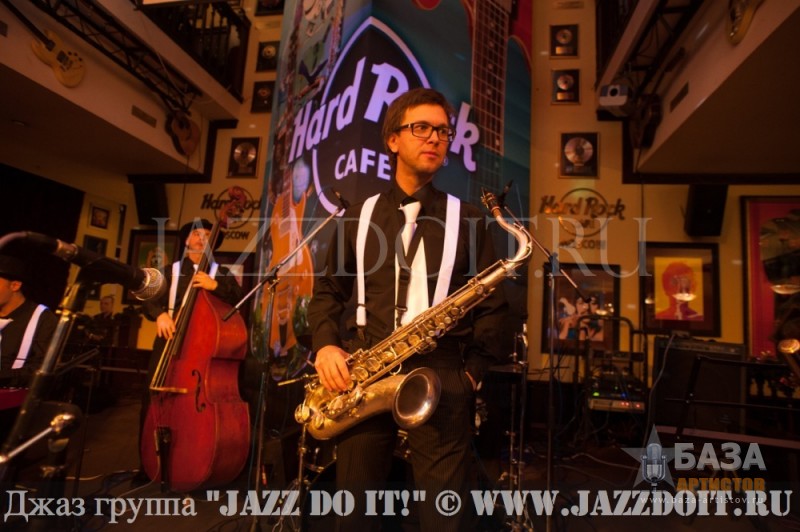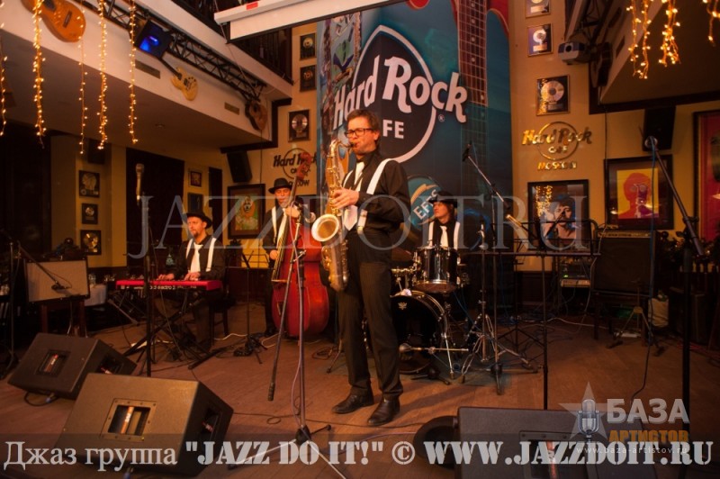 ДЖАЗ ГРУППА JAZZ DO IT Джаз группа "Jazz Do It!" Настало время живого джаза!!! Гангстеры, эпоха роскошных леди и строгих джентльменов. Легендарные танцевальные свинги от Jazz Do It! не дадут вам усидеть на месте, а звуки чарующего джаз латино стайл погрузят вас в атмосферу умиротворения и безмятежности! Все это - джаз бенд Jazz Do It!. Великолепная музыка, умопомрачительные танцы, а также уникальные образы сделают ваш вечер поистине незабываемым. Нежный женский вокал, чарующий саксофон, романтичные клавиши и мужественный контрабас покорят ваши сердца в одно мгновение!