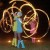 футуристические фигуры, создаваемые при помощи светодиодного реквизита и костюмов, поражают воображение и
