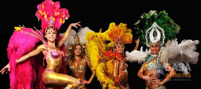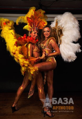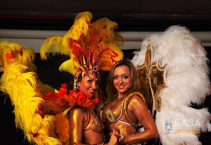 Также, в случае необходимости, мы готовы работать сольными постановочными танцевальными номерами. В каждом танцевальном номере костюмы не повторяются. Настоящим украшением вашего праздника станет сольный дуэтный номер «Али-Баба»- исполняемый участницами шоу-балета в ярких красивых купальниках, украшенных большим количеством золотых цепочек. При этом номер не восточный, здесь мы также придерживаемся темы бразильского карнавала.