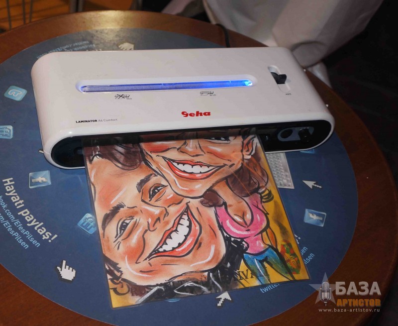 3 часа работы Ламинация . все шаржи. Ламинатор с собой на выезде. Продлить работу художника 1час - . С уважением, Евгений. P.S. Вырезаем силуэты; Есть еще 5 «классных» шаржистов.