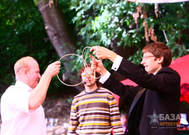 Основные направления в работе: Сценические фокусы Микромагия Фейсконтроль Сценическая магия - это фокусы, демонстрируемые на сцене. Артист выступает одновременно перед всеми зрителями. Работа идёт на определённой площадке, выделенной под выступление артистов. Такой площадкой может быть сцена, пространство между или перед столами в ресторане, пространство перед выставочным стендом и т.д.). Для фокусов используется средне-габаритный или крупный реквизит, хорошо видимый с большого расстояния (трости, кольца, платки, карты, верёвки, газеты и пр.). В сценическое выступление включены разнообразные трюки с тростью, платками, зонтиками, большими металлическими кольцами, верёвками, лентами, конфетти, огнём, игральными картами и т.д. В программе обязательно присутствуют фокусы с участием зрителей. Любой желающий может выйти на сцену и попробовать себя в роли фокусника. Стандартная продолжительность выступления - 15-20 минут. Микромагия– это фокусы на близком расстоянии. Артист работает уже не перед всеми зрителями одновременно, а только для некоторых из них. Площадкой для выступления обычно служит небольшое пространство - фойе заведения, где проходит мероприятие; пространство перед столикаи в ресторане или др. любое пространство, вокруг которого стоит или сидит небольшая группа зрителей. В процессе работы артист постепенно обходит всех зрителей. Для фокусов используется мелкий реквизит - игральные карты, монеты, денежные купюры, булавки, сигареты, зажигалки, резинки для денег и пр. Каждый зритель – это ещё и участник необычного представления, любой желающий может попробовать себя в роли волшебника! Так как зрители в любой момент могут взять предмет и осмотреть его, то все фокусы кажутся невероятными для понимания! Стандартная продолжительность выступления - 30-60 минут. Фейсконтроль– это необычный и ярко запоминающийся розыгрыш Ваших гостей! Артист в форме охранника встречает гостей. Вся работа направлена на людей, входящих в заведение, где проходит тожественное мероприятие. Площадкой служит пространство перед входом. Во время работы фокусник проверяет гостей на наличие «запрещённых предметов» и на глазах изумлённых зрителей достаёт всевозможные предметы – фрукты, столовые приборы, алкогольные напитки и пр. Стандартная продолжительность выступления - 30-60 минут.