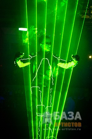 У Вас пявилась уникальная возможность увидеь один из самых оригинальных жанров на сегодняшний день.Номер LASERMAN расчитан на любой возраст, даже для самого искушенного зрителя! Этот номер оставит очень яркое впечатление. Сочетание новейших технологий,музыки и профессиональной постановки приятно удивит своей магией! Магия номера LASERMAN заключается в том,что в течении 5минут происходит мистическое укрощение лазера в разных плоскостях и объемных проекциях. LASERMAN демонстрирует вращение и трансформацию геомитрических фигур в пронстранстве.