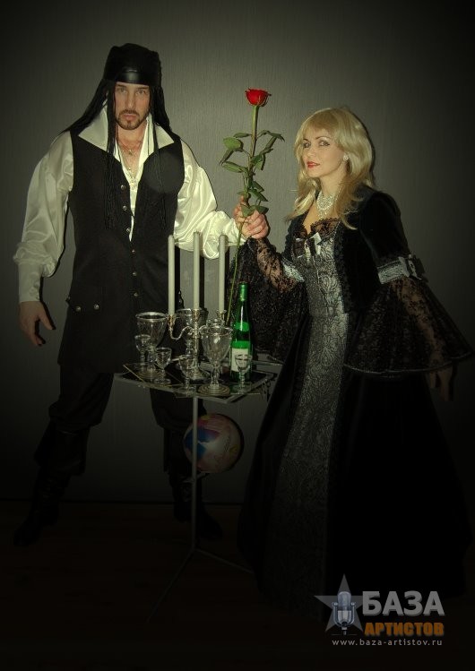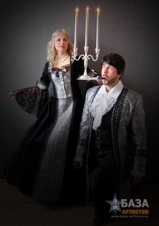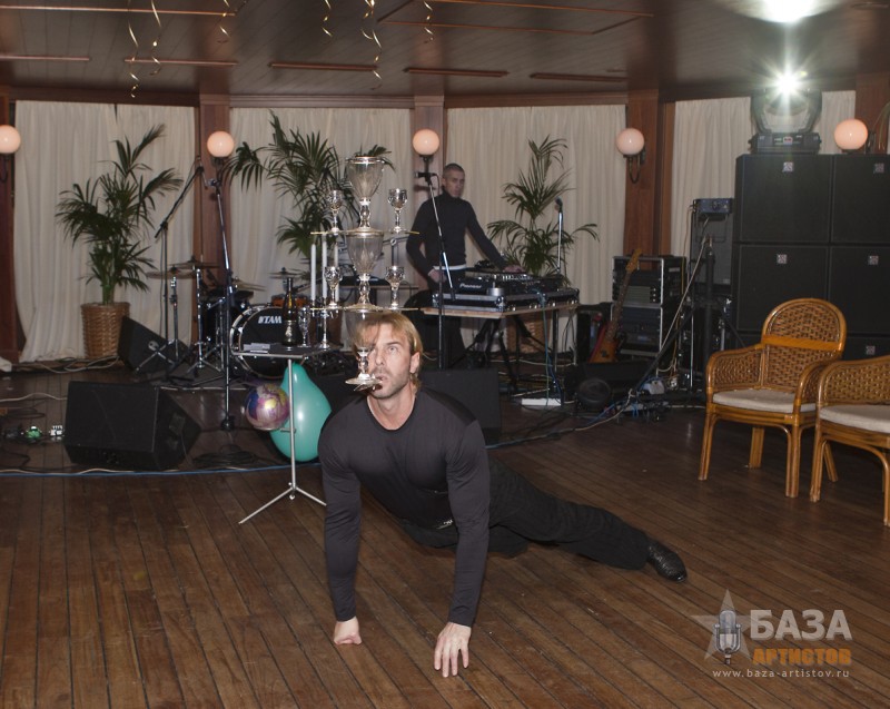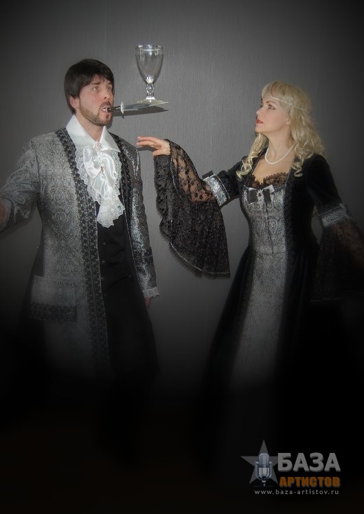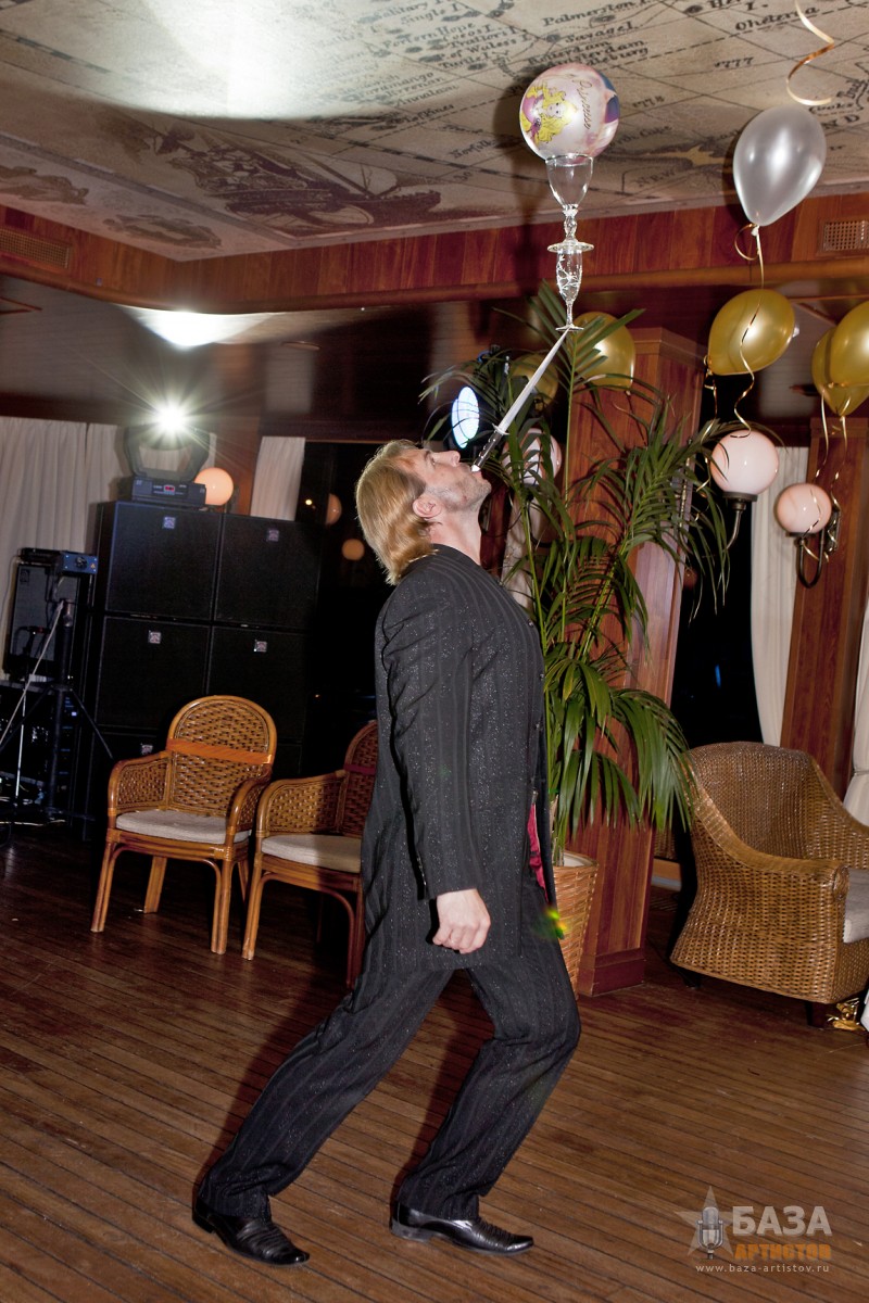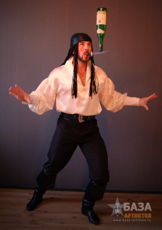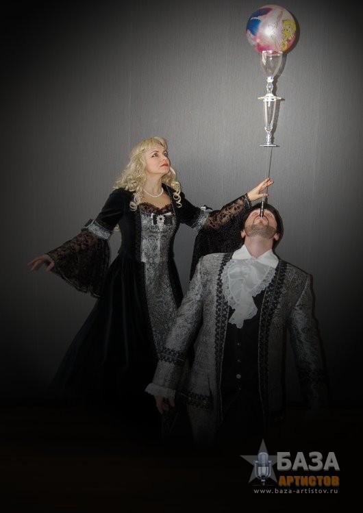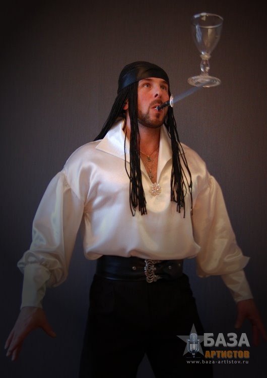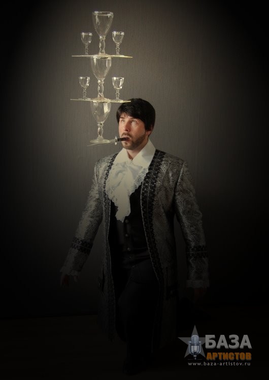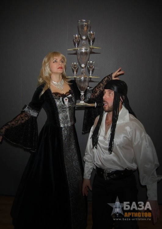 ДУЭТ «МАГИЯ БАЛАНСА» Поднять на лезвии ножа пирамиду из бокалов, подбросить бутылку ногой, что бы она была поймана на нож, при этом сделать стойку на руках и не уронить пирамиду из бокалов, может только уникальный дуэт «Магия баланса». На вашем мероприятии дуэт «Магия баланса» может быть в разных костюмах, в зависимости от тематики вечера: Венецианский бал, Пиратское шоу Джека Воробья, Русский фольклор, Трубадур, и конечно, простой парень из народа в черном. Десять минут захватывающего шоу с интерактивом оставит ваших гостей под неизгладимым впечатлением.