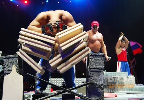 Экстремальное силовое шоу «Русские Богатыри» - единственное в России и Европе. Три мускулистых красавца весом более 125 кг, во главе с капитаном команды Александром Муромским, поражают воображение демонстрацией сверхчеловеческих возможностей, силы русского духа, выносливости и воли.