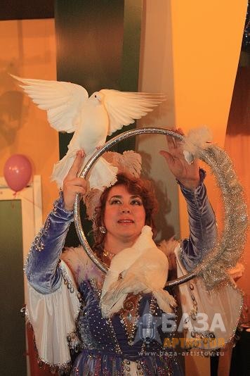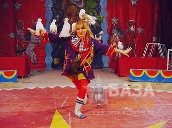 Номер с голубями: птицы исполняют классические ц трюки: лесенка,баланс на шаре и на кольце,тройной жонгляж.