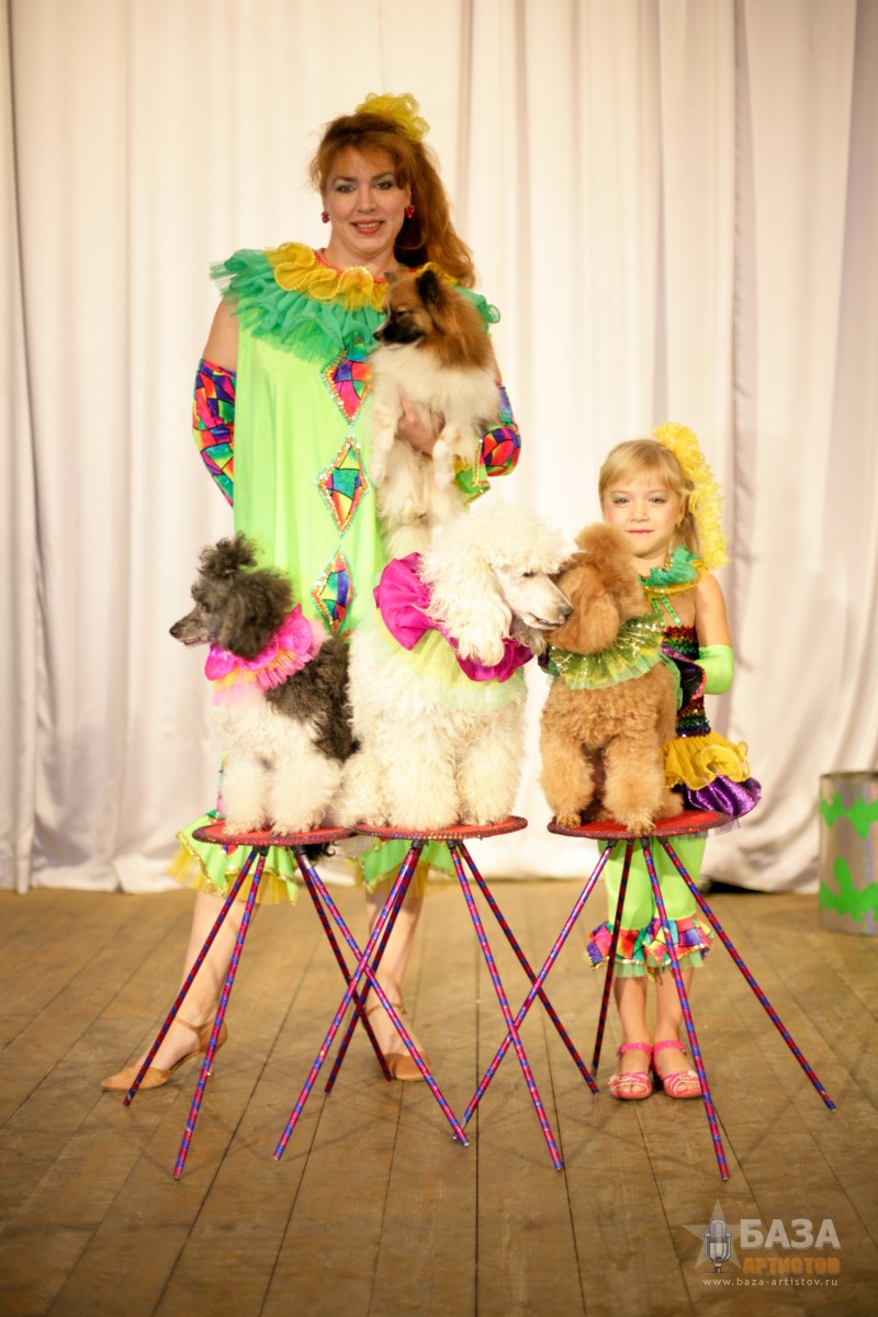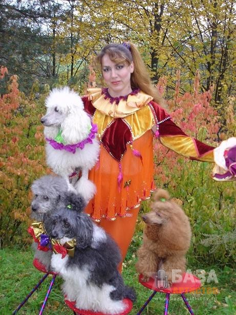 Собачки: четыре пуделя ,ухоженные,чистые и ласковые покажут Вам разнообразные цирковые трюки:скакалочка и волебол с воздушным шаром,баланс и прыжки...